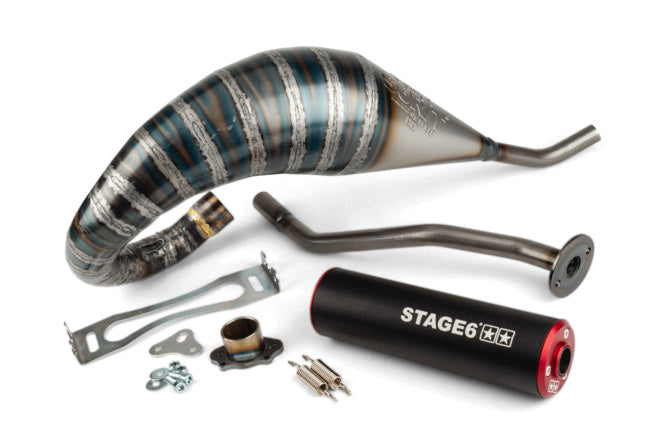 Avgassystem Stage6 Streetrace krom CNC röd/svart Derbi / Minarelli AM6
