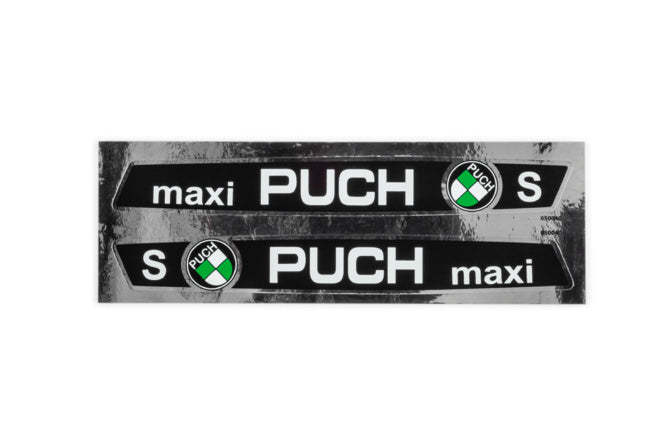 Klistermärke Puch Maxi tank (x2) 205x25mm krom